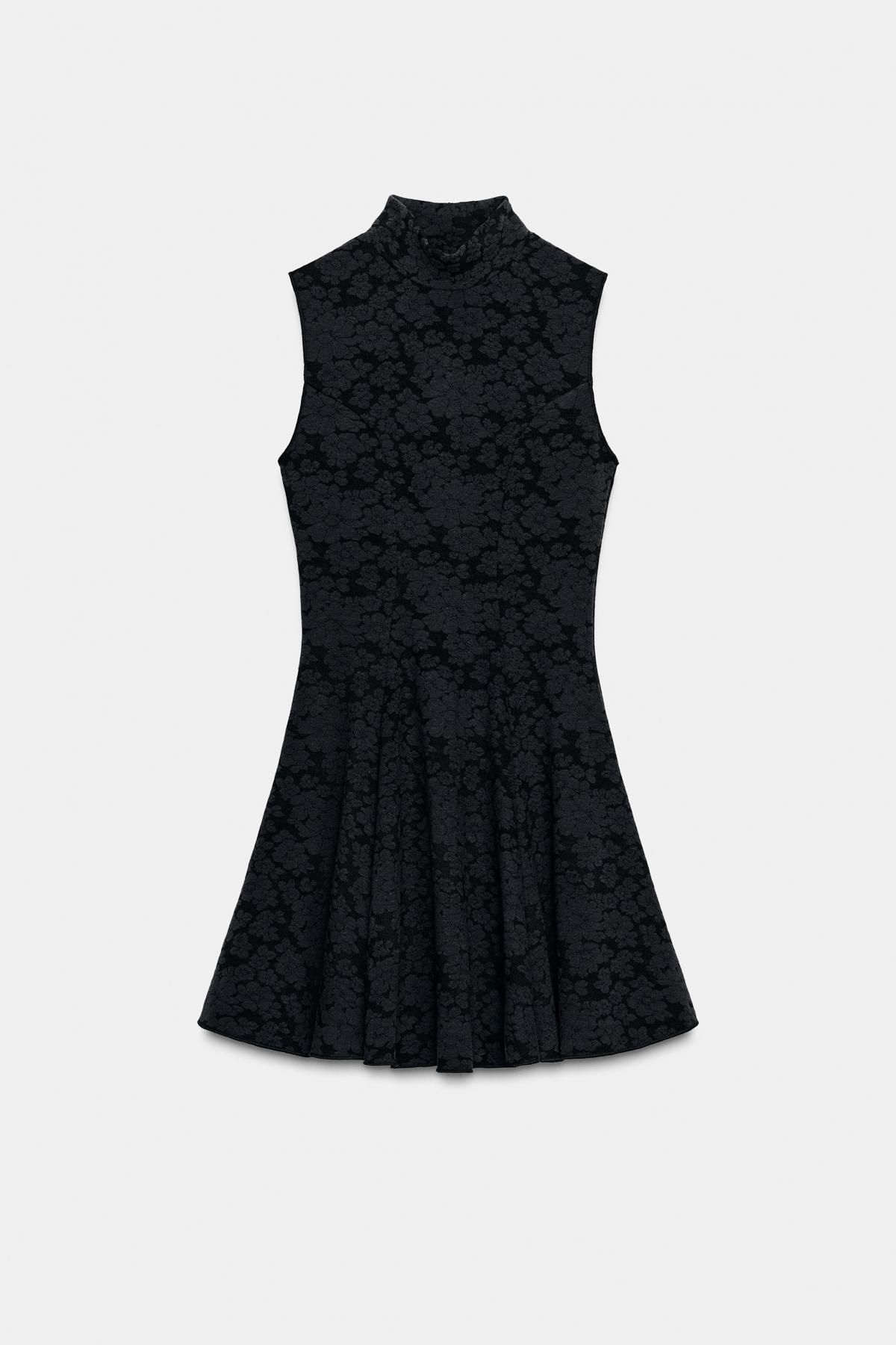 자라 플라워 자카드 하이넥 미니 원피스 5584/199 BLACK