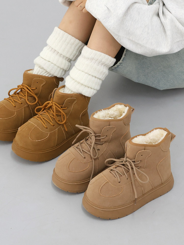 빈카 스티치 레이스업 퍼트리밍 겨울 신발 통굽 앵클 숏 부츠 양털부츠 방한화 털신 (3.5cm/기모안감) 12144