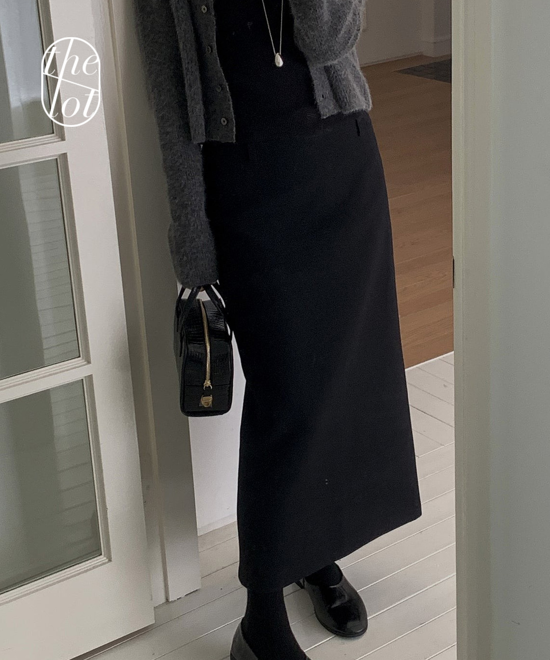 (일부당일) [miel] 미엘 로엠 뒤트임 울 맥시 스커트 (2color) 치마/롱스커트/하객룩/데이트룩/출근룩/겨울신상