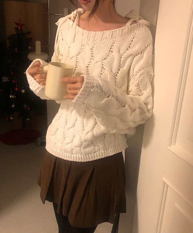 [⛄겨울신상] 슈크림 꽈배기 스트링 니트 (6color)/꽈배기니트/스트링니트/데이트룩/연말룩/보트넥니트/루즈핏니트/어깨끈니트/오프숄더