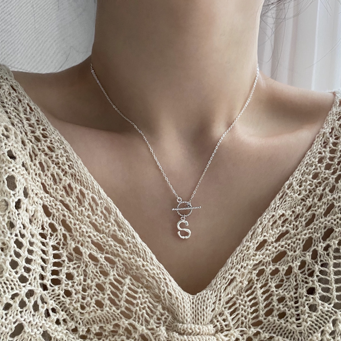 Acer rojo iu 실버925 이니셜 토글바 데일리 포인트 목걸이 은목걸이 실버목걸이