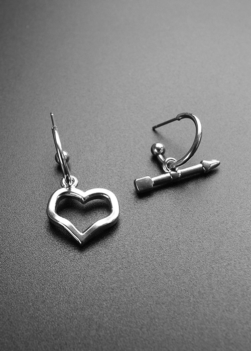 (세트) 써지컬스틸 큐피트 화살 하트 포인트 링 귀걸이 E-0221