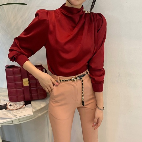 [5천장돌파/특가]도톰 골드버튼 셔링 실크블라우스