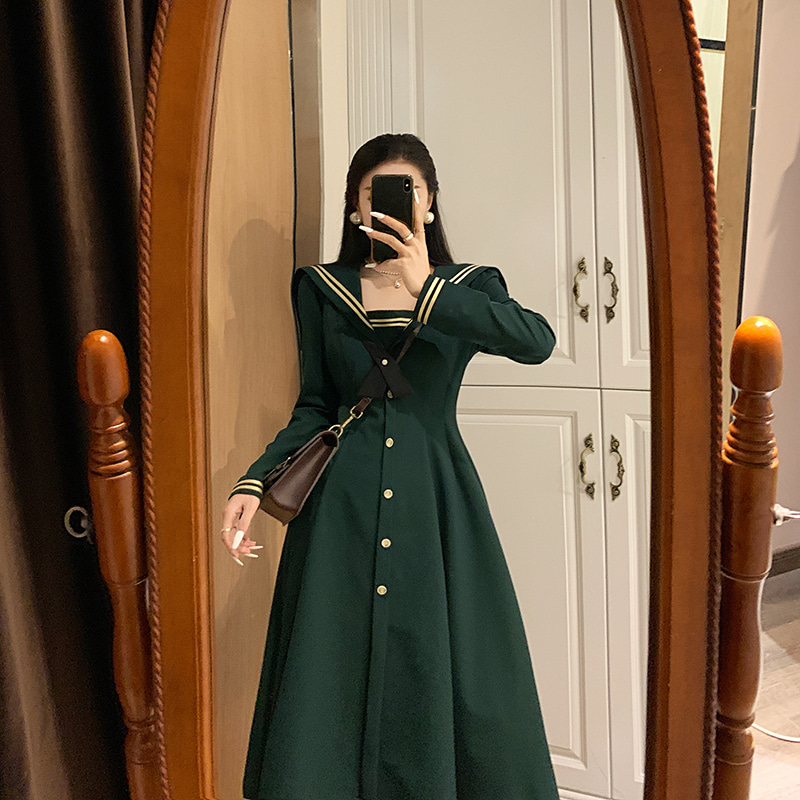 복고컨셉 촬영 세일러 롱 원피스