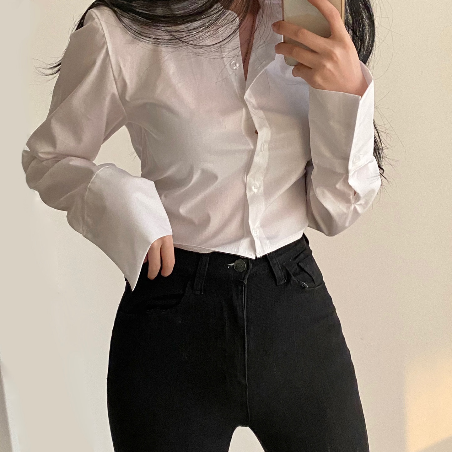 [굿원단/스판5%] 쏘핫 크롭 남방,셔츠 블라우스