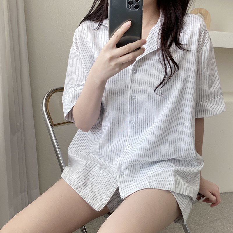 순면 여름 린넨 스트라이프 커플 잠옷 반팔 반바지 3color