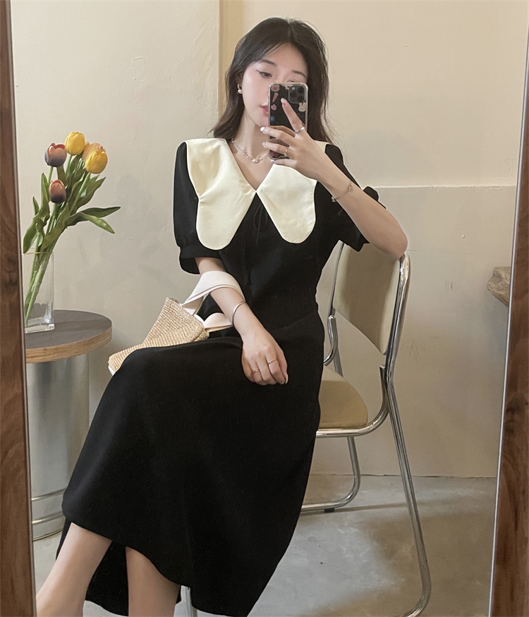 [그린/블랙] 빅카라 복고st. 플레어 하객 롱원피스