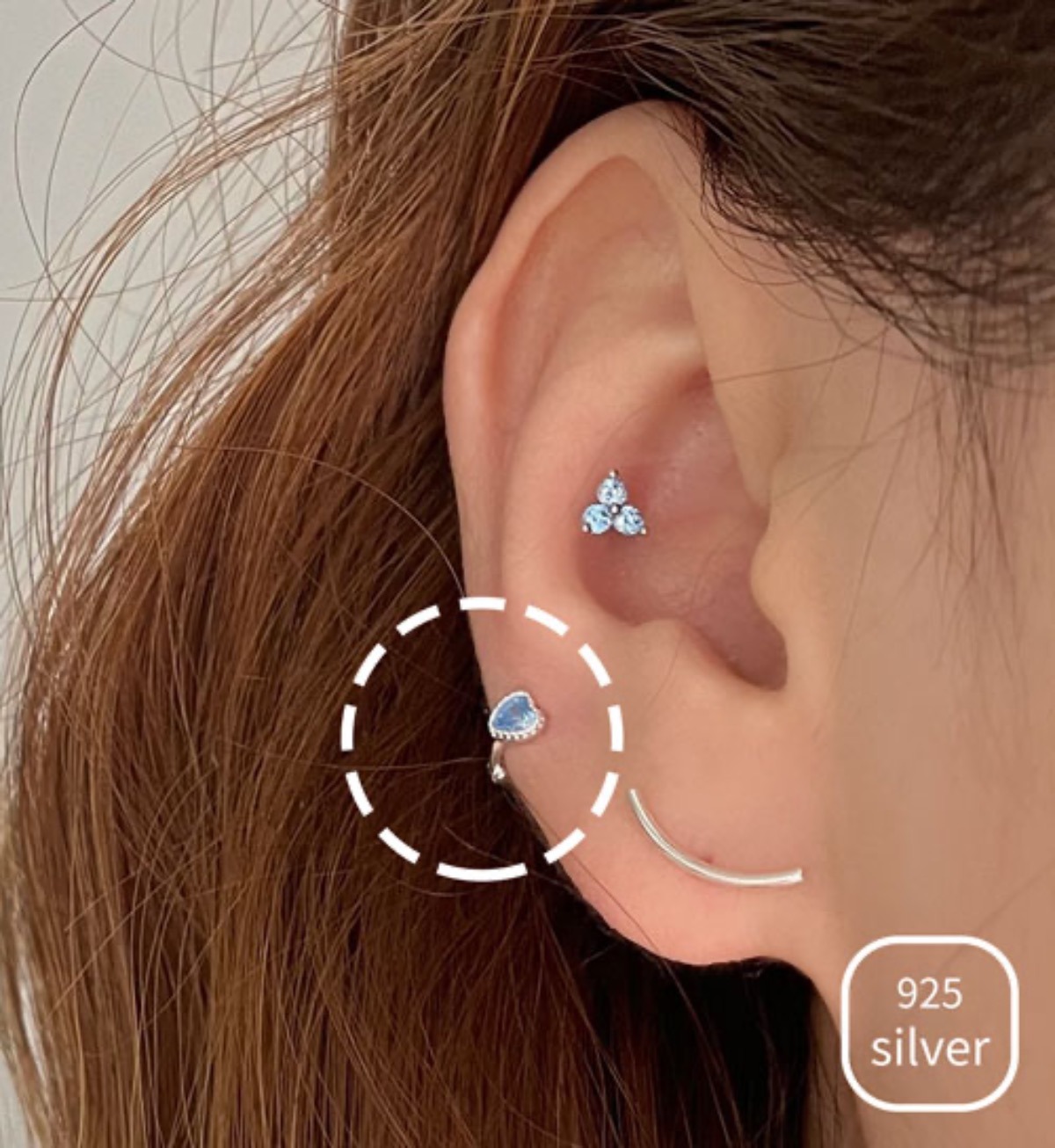 [무배/한쌍] 크리스탈 블루 하트 미니링 귀걸이