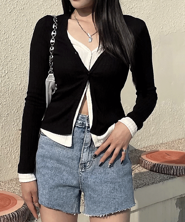 오픈 골지 레이어드 긴팔티(2color)