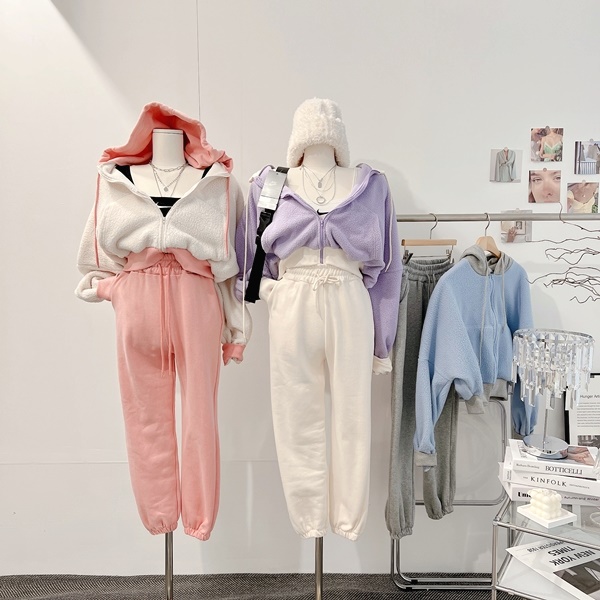 #주문폭주 [세트가격!/꾸안꾸룩!] 가을 뽀송 기모 양털 뽀글이 크롭 후드 집업 밴딩 조거 팬츠 투피스 트레이닝 세트 [3color]