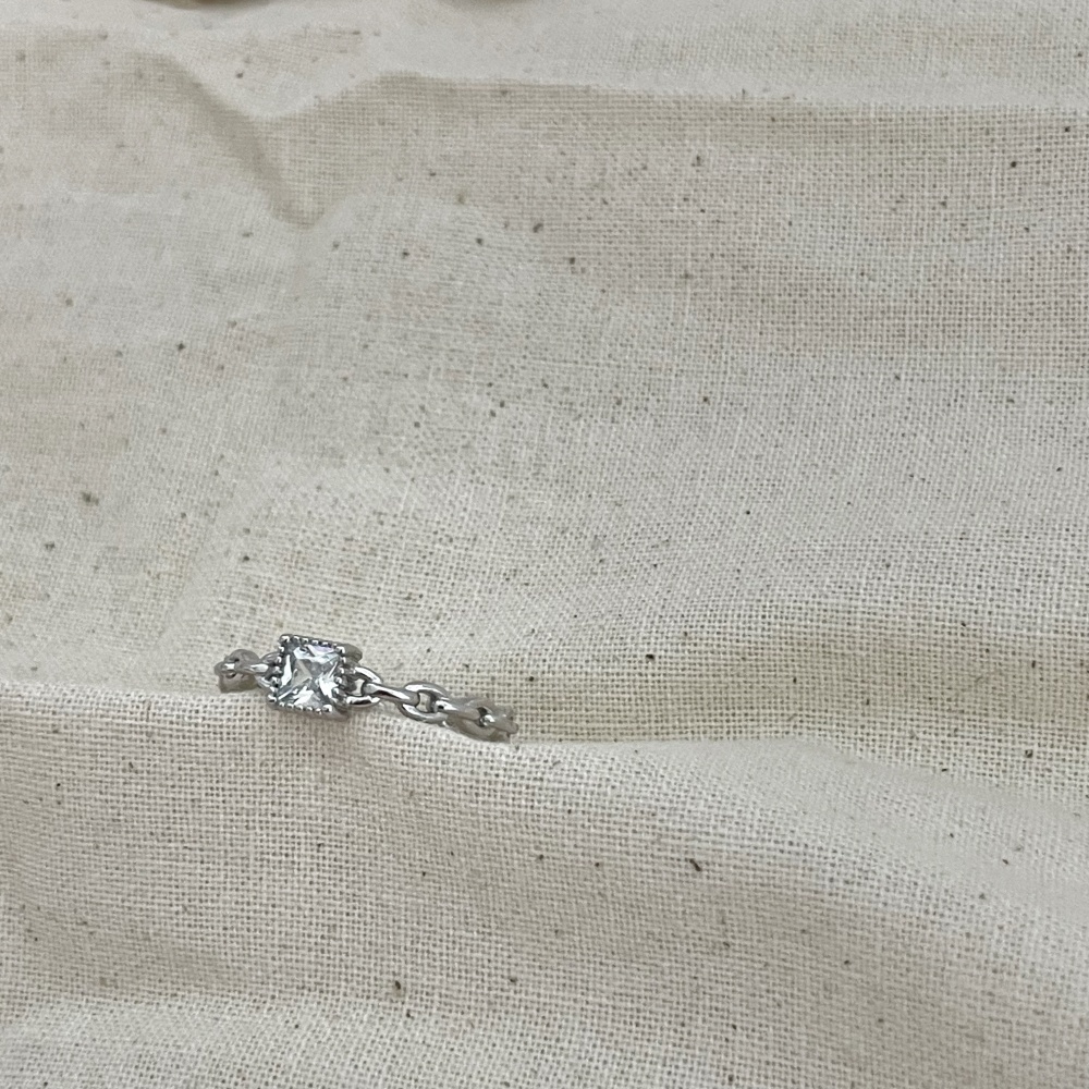 아줄 지르코니아 체인 스퀘어 큐빅 반지