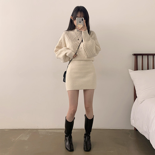 [투피스느낌/실물보장!] 여신강림, 피셔 꽈배기 니트 미니 원피스 (4color)