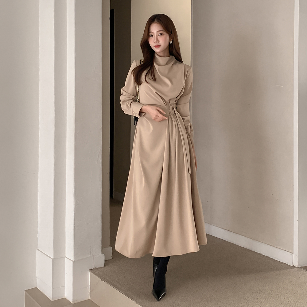 [단독진행💗]홀릭 하이넥 벨트 셔링 A라인 롱 원피스(하객룩)
