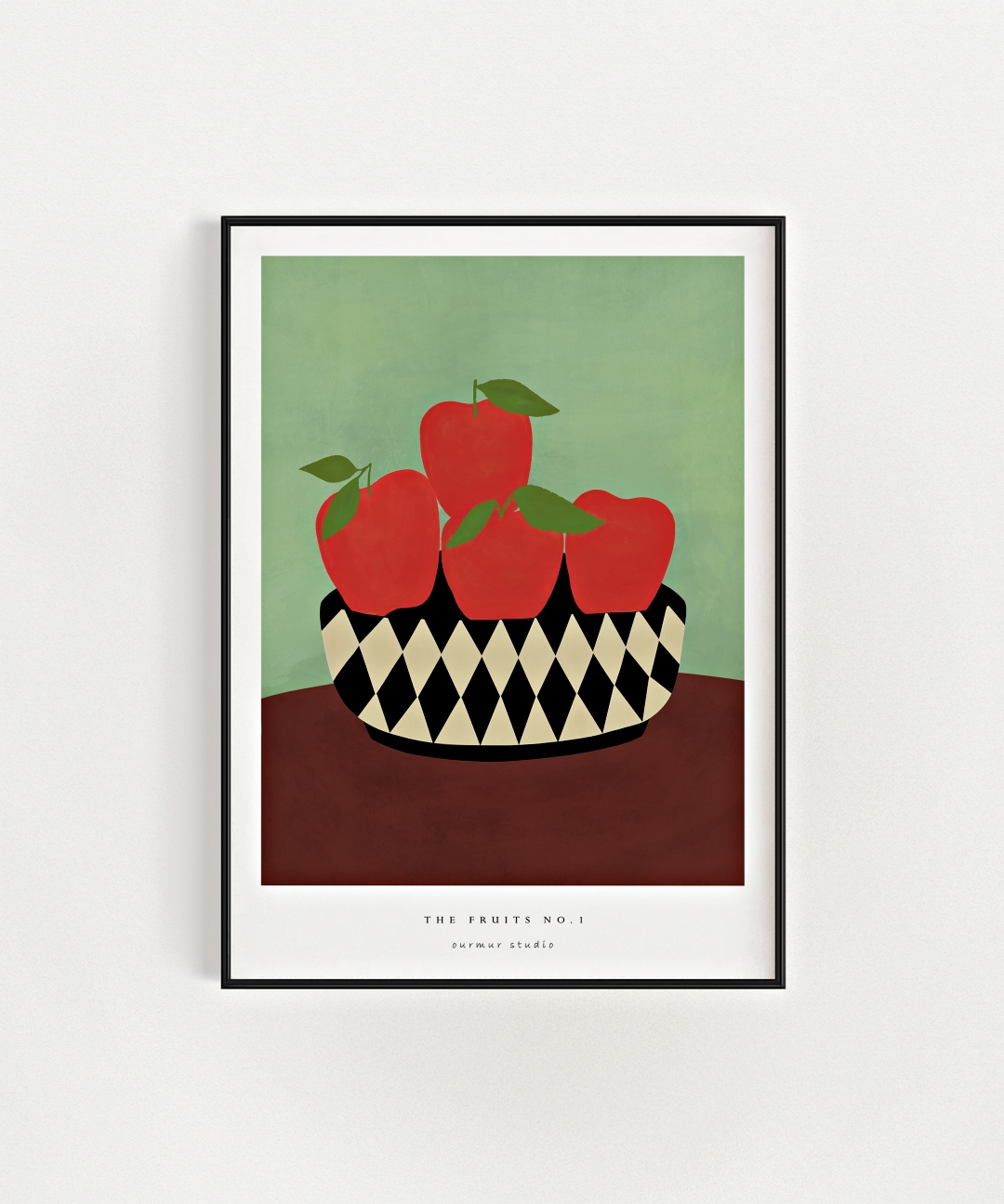 빈티지 사과 그림 일러스트 인테리어 아트 포스터 Bowl of Apples