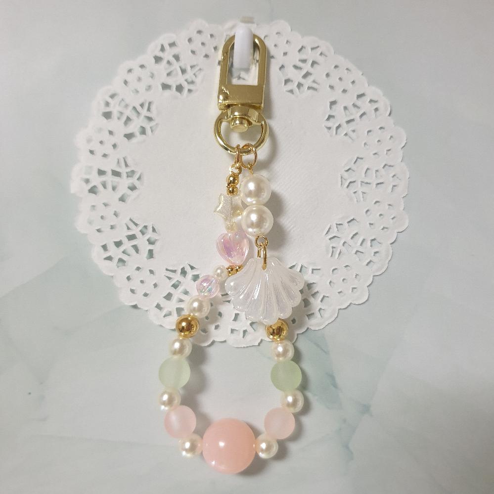 신비로운 진주빛 스타일로 화장품 파우치에 여성스럽게 코디하기 좋은 키링
