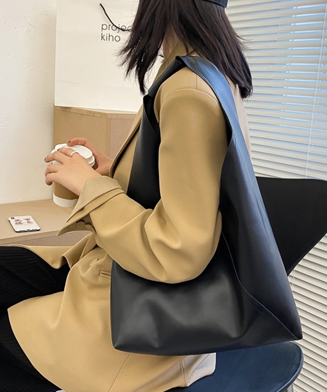 비건 레더 심플 트라이앵글 숄더백 블랙 브라운