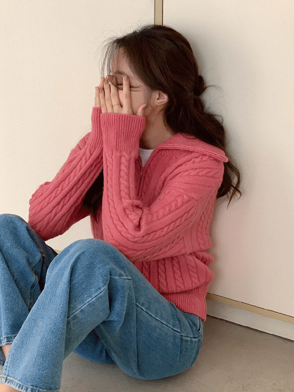 비비드 케이블 하이넥 반집업 니트 - [머스타드옐로우]