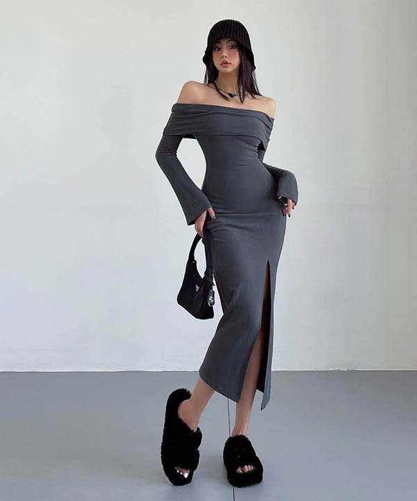 네고 앞트임 프렌치룩 오프숄더 롱 원피스