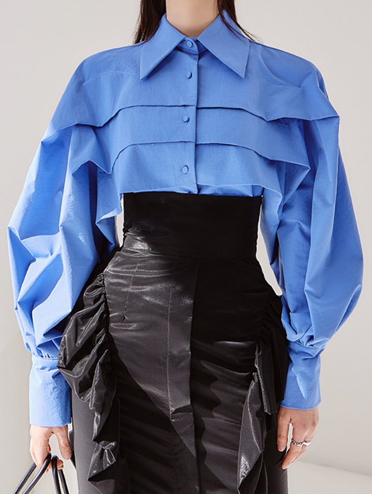 S9019 로리에 프론트 핀턱 볼륨 셔츠