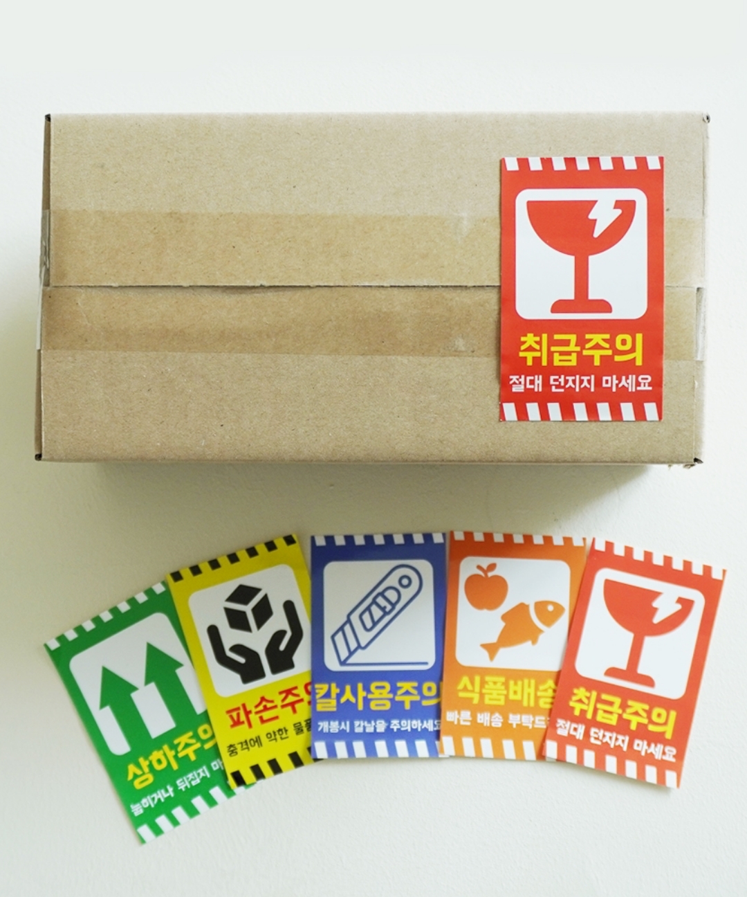 취급주의 파손주의 택배 스티커 5종 [박스 칼사용 경고 배송스티커]