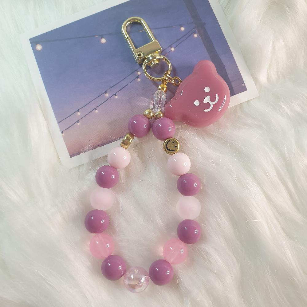 차분한 핑크 보라 곰 키링