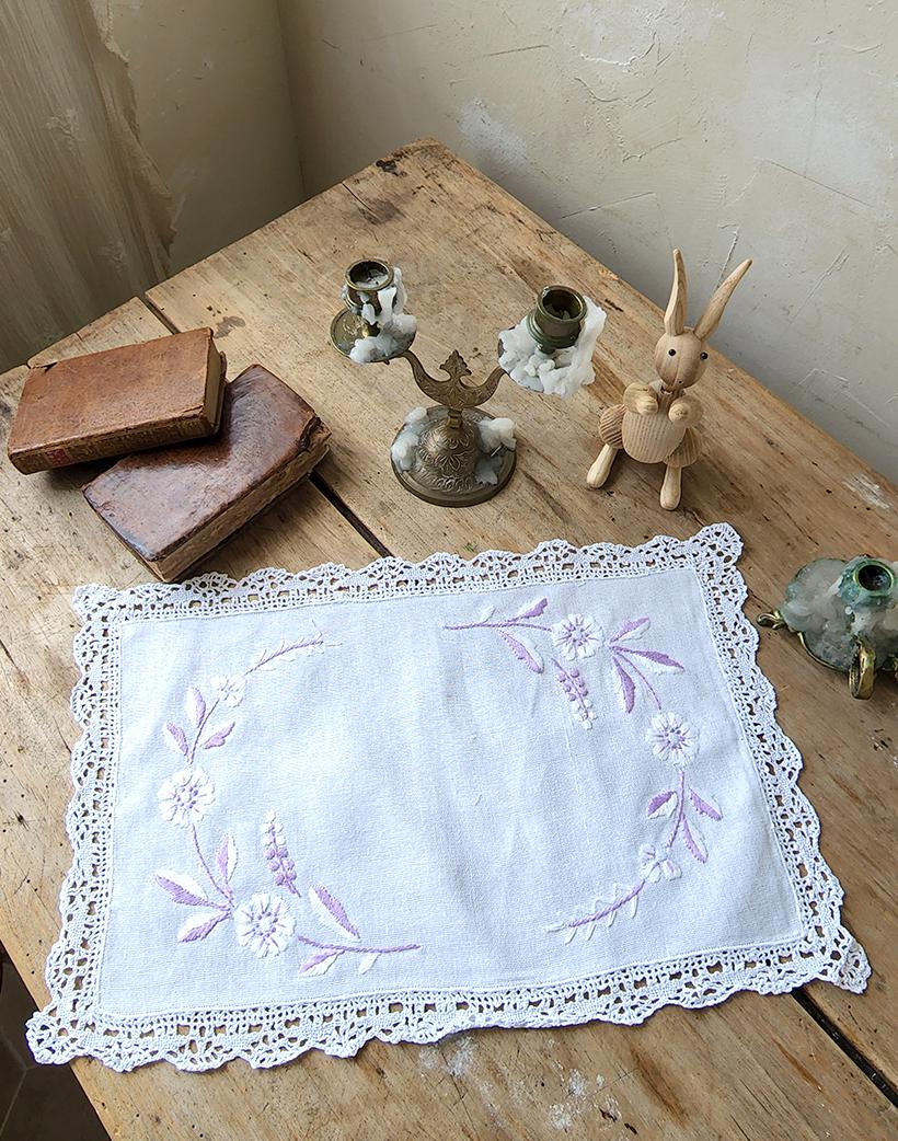 블랑쉬 퍼플 플라워 자수 러너 28x42