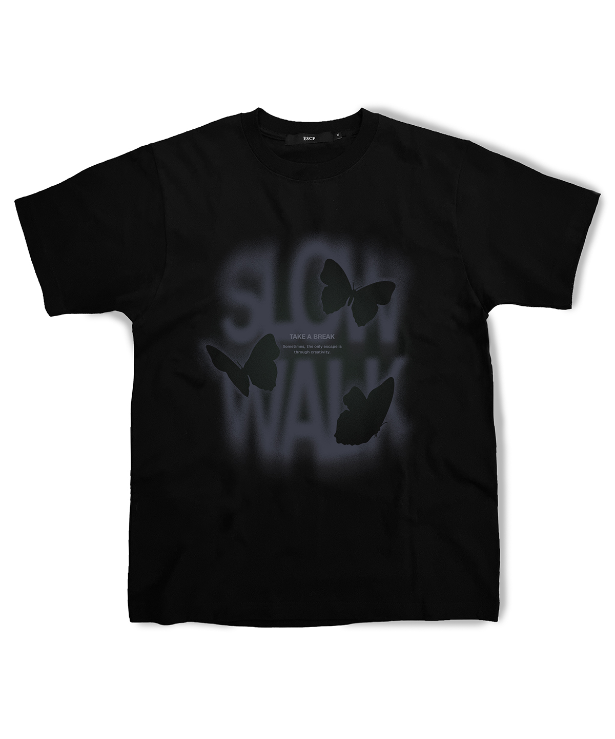 퍼플 스텐실 버터플라이 티셔츠 블랙