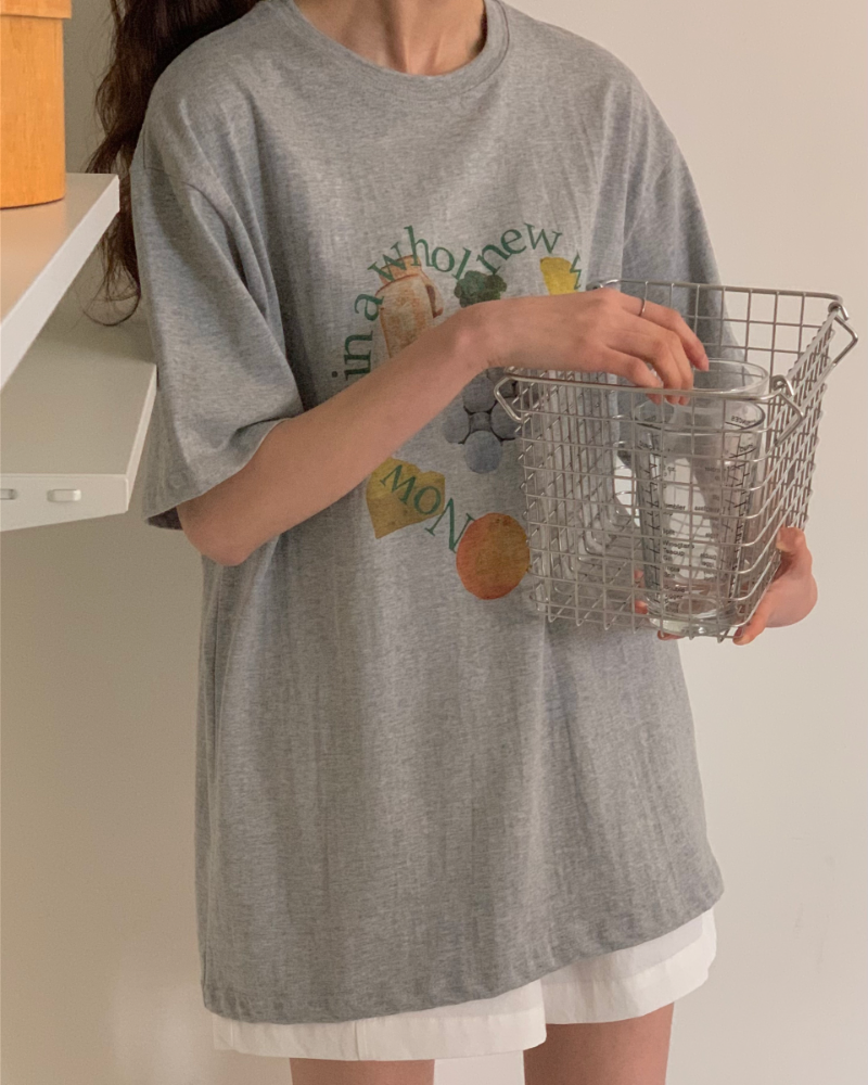five 베지 박스 여름 반팔티 레터링 오버핏 캐쥬얼 데일리