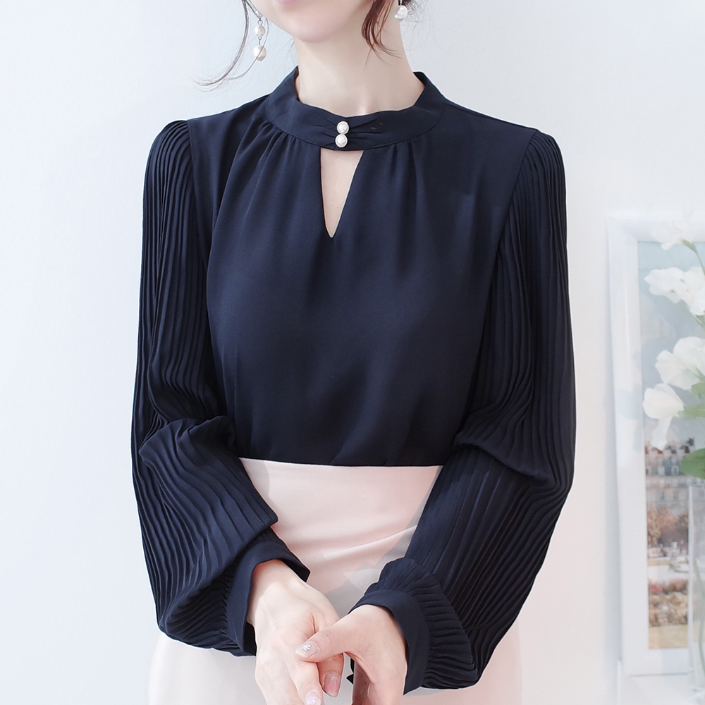 [가을 하객룩] 미라즈 트임 초커 플리츠 주름소매 쉬폰블라우스