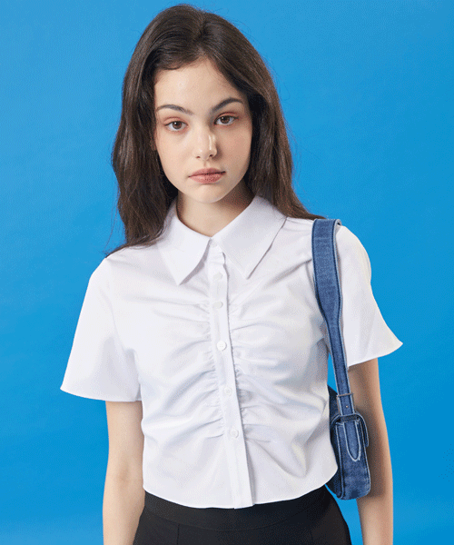 [케플러 서영은, 트리플에스 김유연 착용] WOMEN 셔링 크롭 반팔 셔츠 [2colors]