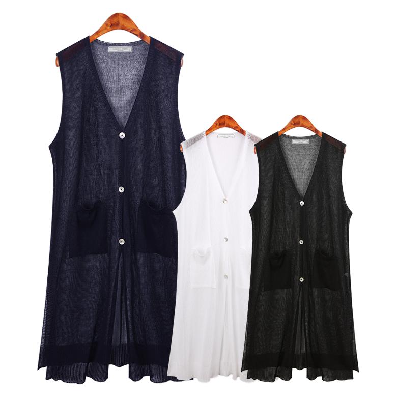 허밍퍼플 여성용 4333-HY 망사 롱 조끼 가디건 빅사이즈 여름 시원한 아이스 쿨 날씬 핏감 슬림 체형커버 레이어드 여성의류