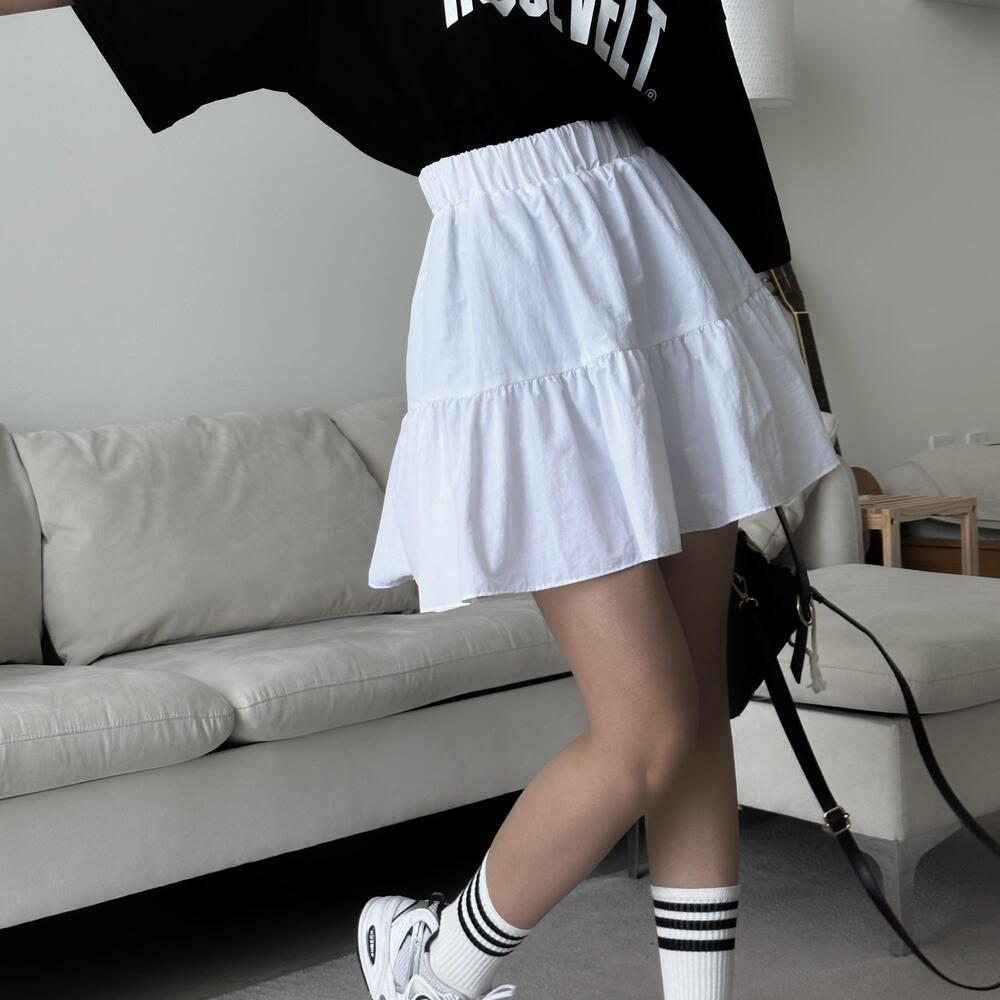 애니 바스락 캉캉 미니 스커트 (봄,여름,가을,치마,숏,A,라인,플레어,티어드,핏,훌,셔링,주름,나일론,하이웨이스트,하이웨스트,속,바지,안감,전체,통,밴드,밴딩)