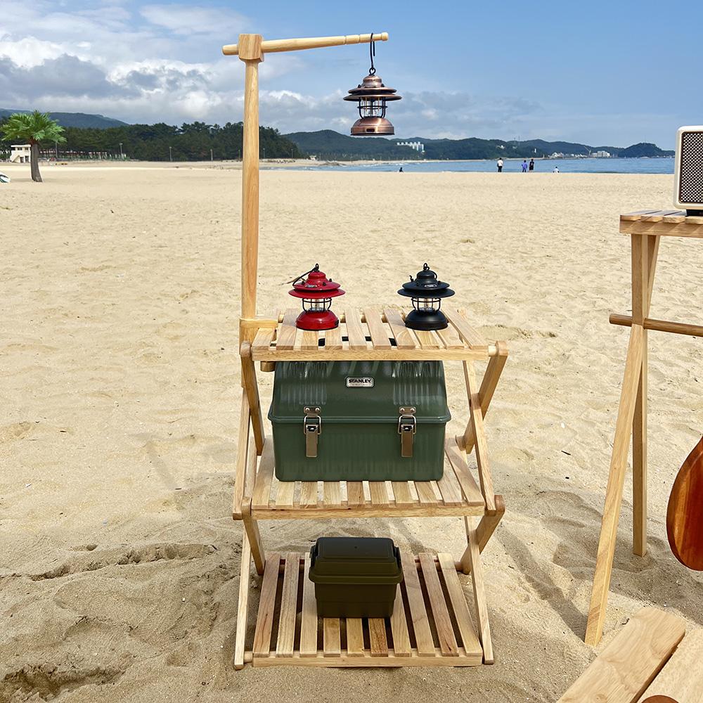 캠핑덕 접이식 우드쉘프 3단 하드우드 캠핑 선반