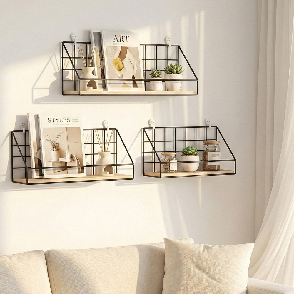 우드 네트망 벽선반 메쉬망 수납 벽걸이 정리대