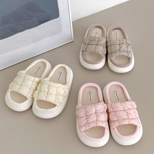 당일출고) 발편한 린넨 퀼팅 슬리퍼 푹신한슬리퍼 여름슬리퍼