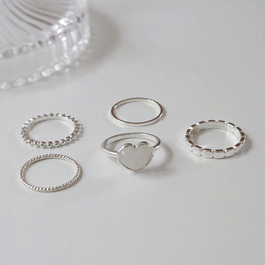 [5 set] 빅 글루 레이어드 반지 세트 / 2 color