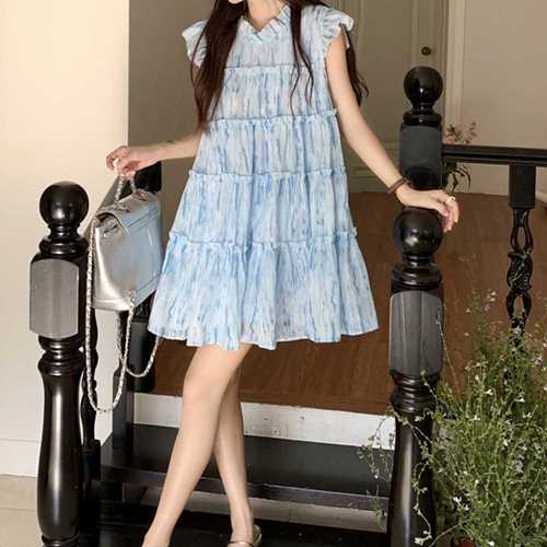 스카이 블루 샤랄라 A라인 나시 민소매 미니 원피스 J02