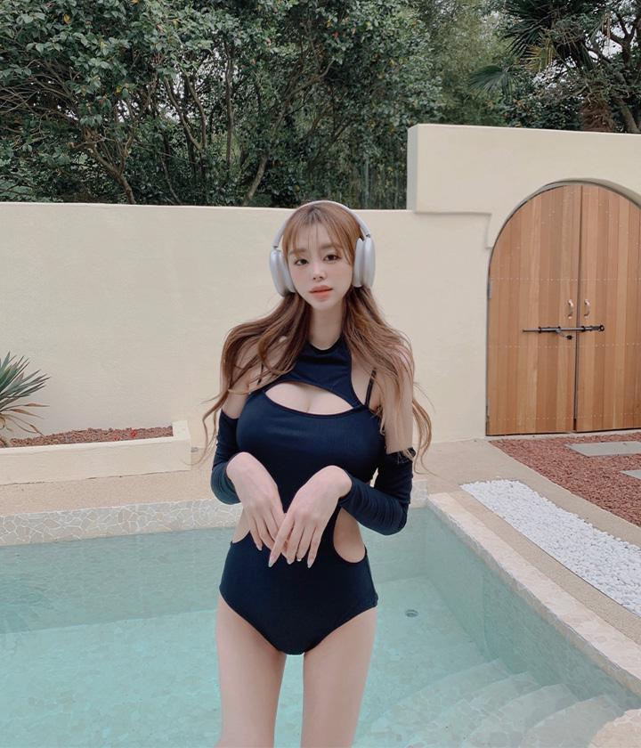 DELI SUMMER 마지 홀터 슬릿 워머 모노키니 수영복 세트