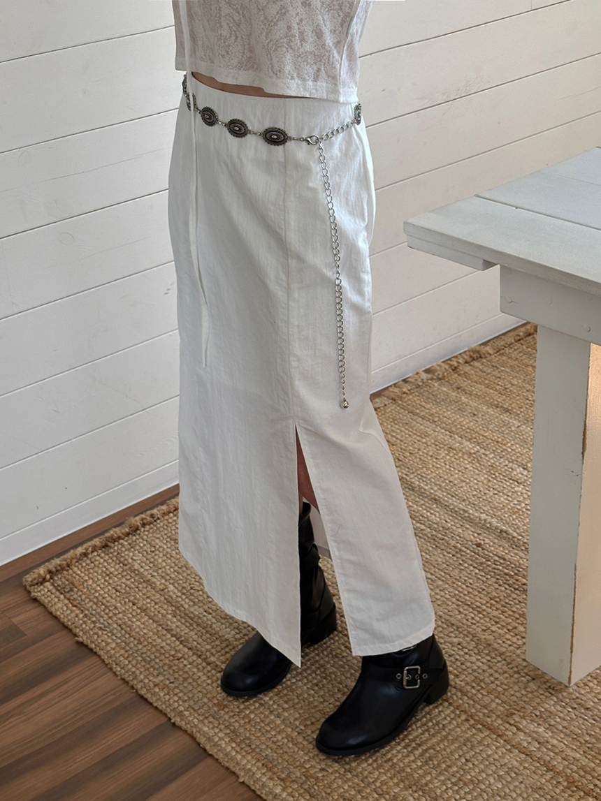 [MADE] 차크란 여름 장마 나일론 트임 슬릿 롱 스커트 2col