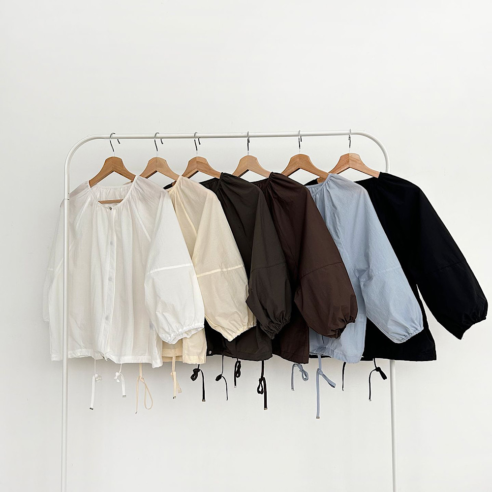 노카라 라운드 셔링 끈 예쁜 크롭 짧은 미시룩 여행룩 편한 소라 흰색 검정 면 블라우스