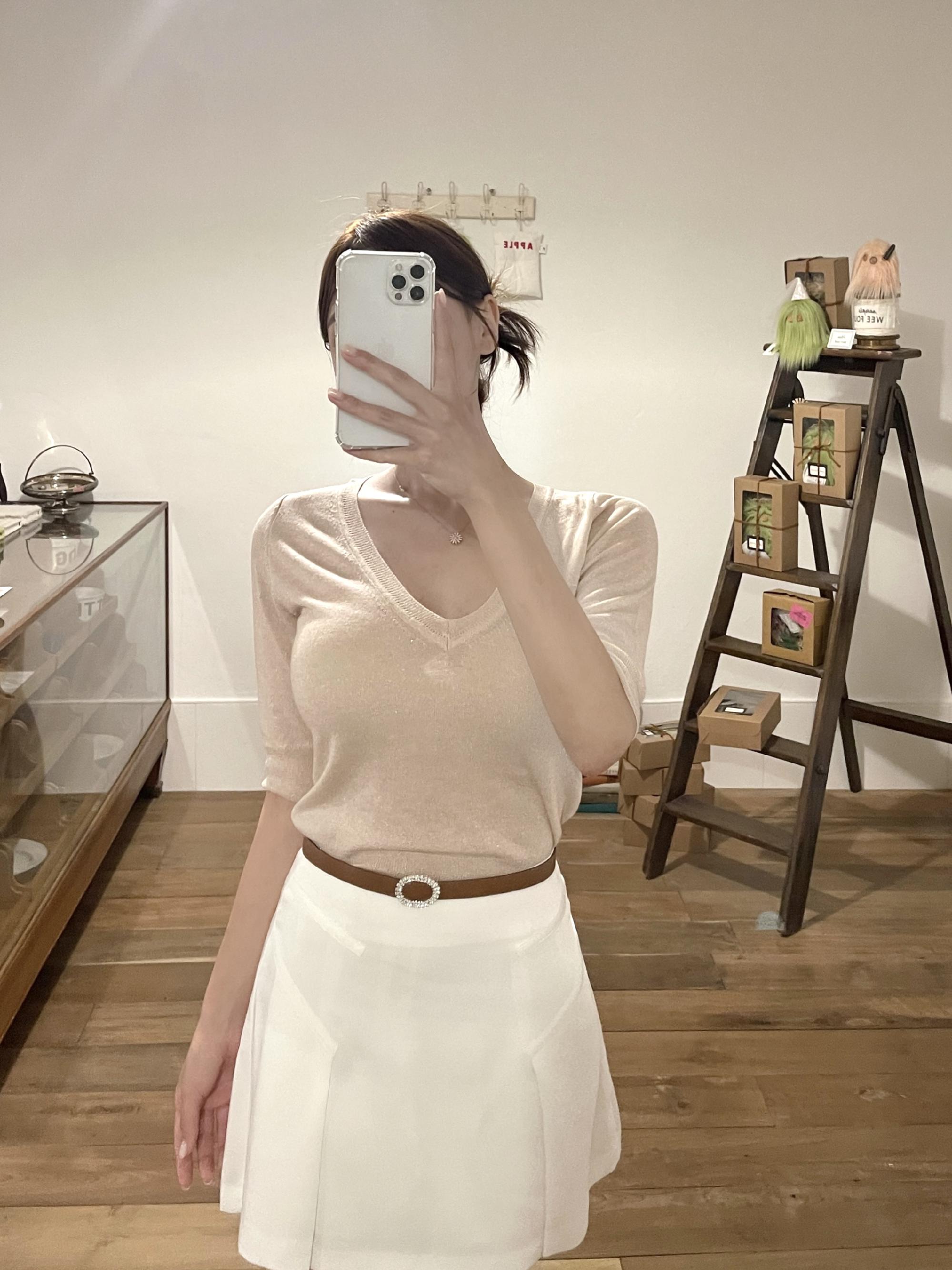 글리터 펄 브이넥 5부 니트 (col) /얇은 원단