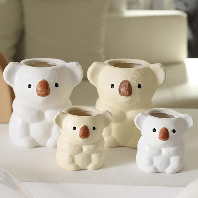 작은 코알라 화이트 세라믹 화분 2size [인테리어 오브제 도자기 동물 소형 예쁜 조화 토분]