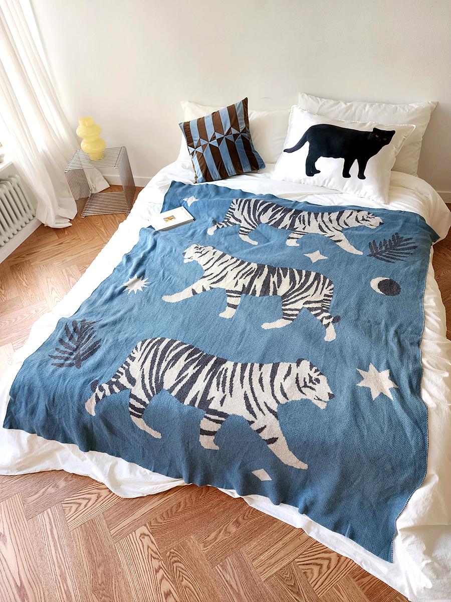 블랑쉬 스틸블루 호랑이 캐시미어 아트 모티브 블랭킷