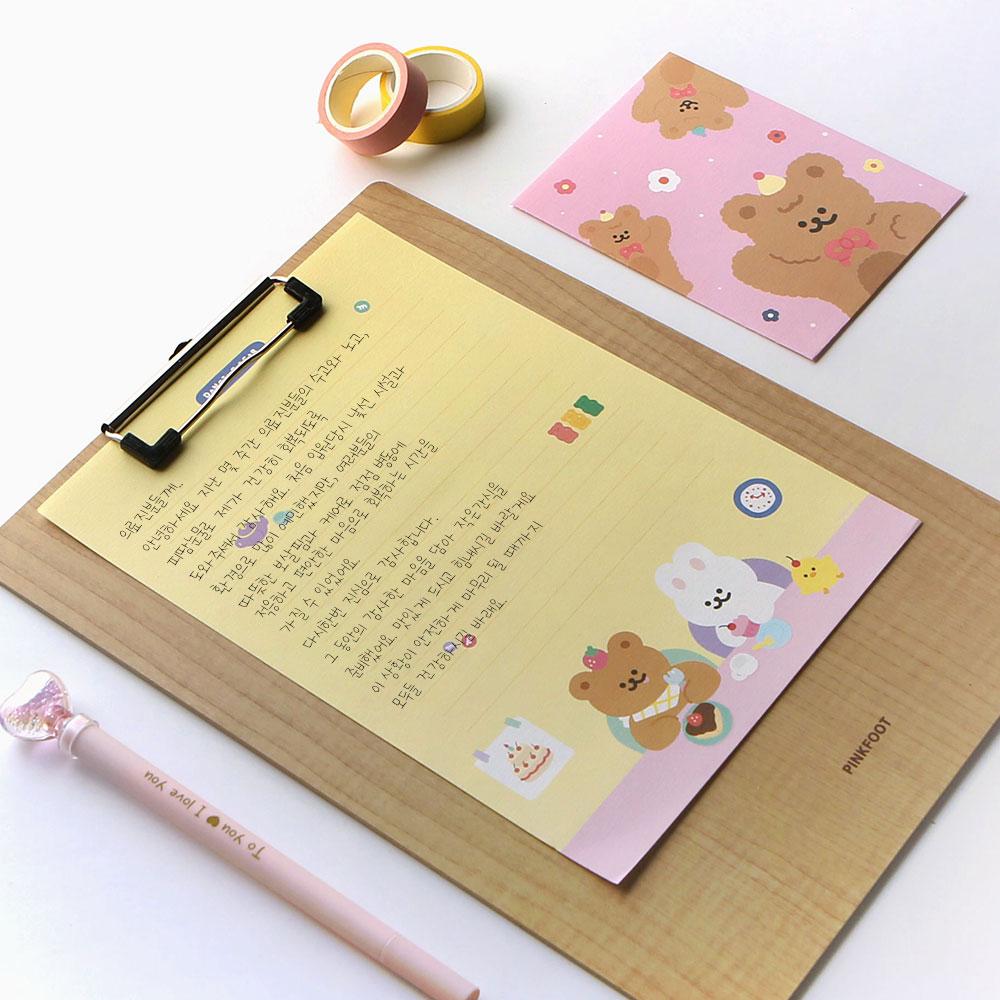 핑크풋 댄싱베어 편지지 예쁜 편지 캐릭터 곰신 군인 디자인