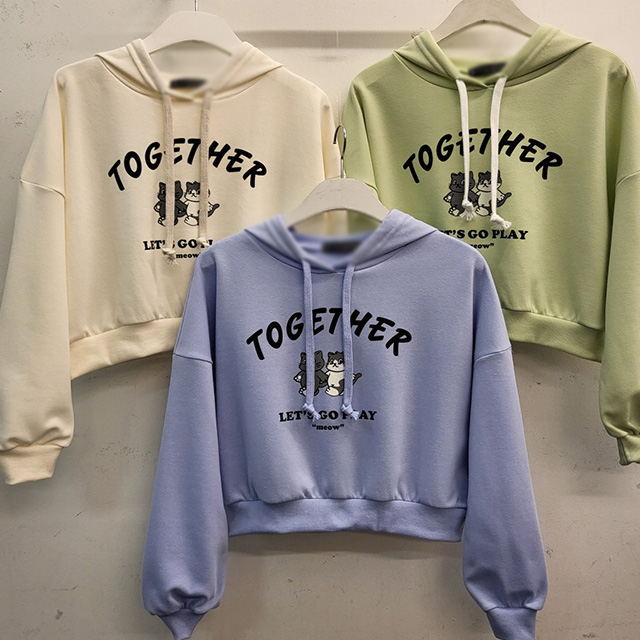 [3컬러] 짝짝꿍투게더크롭후드티 여성크롭후드티 여자크롭후드티 크롭티셔츠 후드티셔츠 데일리후드티 데일리크롭티 긴팔후드티 10대여자크롭후드티 20대여자크롭후드티 중고등학생 고양이