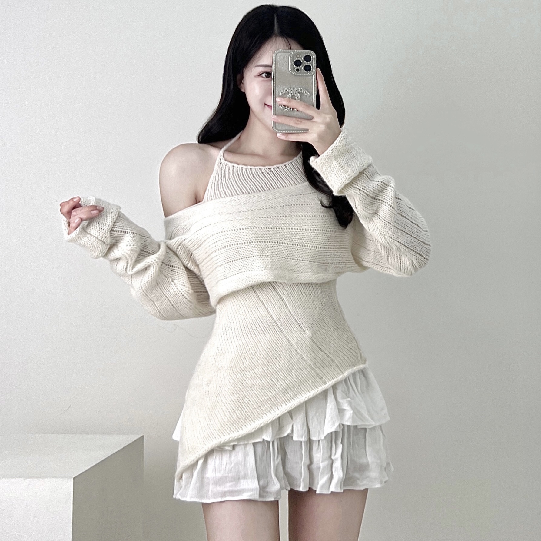 [원조/고퀄] 홀터넥 언발 울 니트 나시+볼레로 오프숄더 가디건 투피스 세트 셋업 데이트룩 여행룩 1color