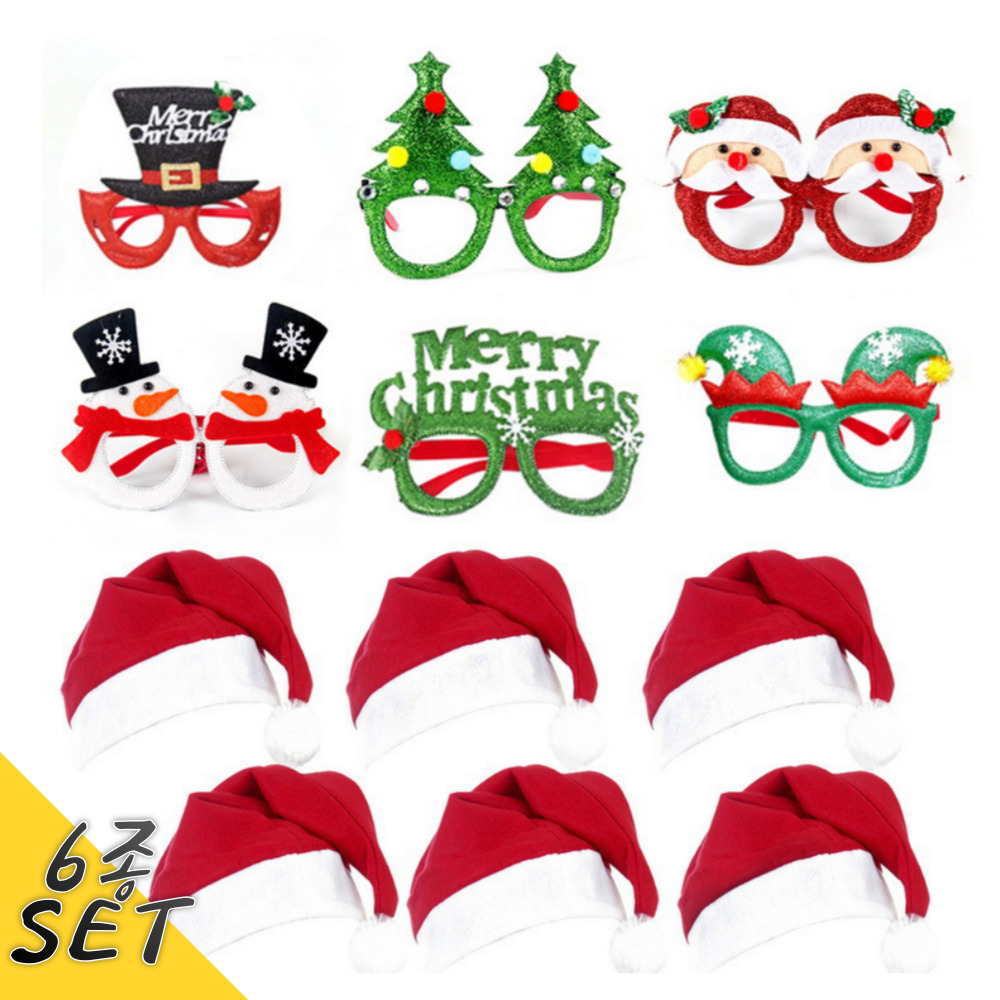 크리스마스 안경모자 6종 세트 연말 파티 이벤트 행사 코스튬 벌칙 아이템