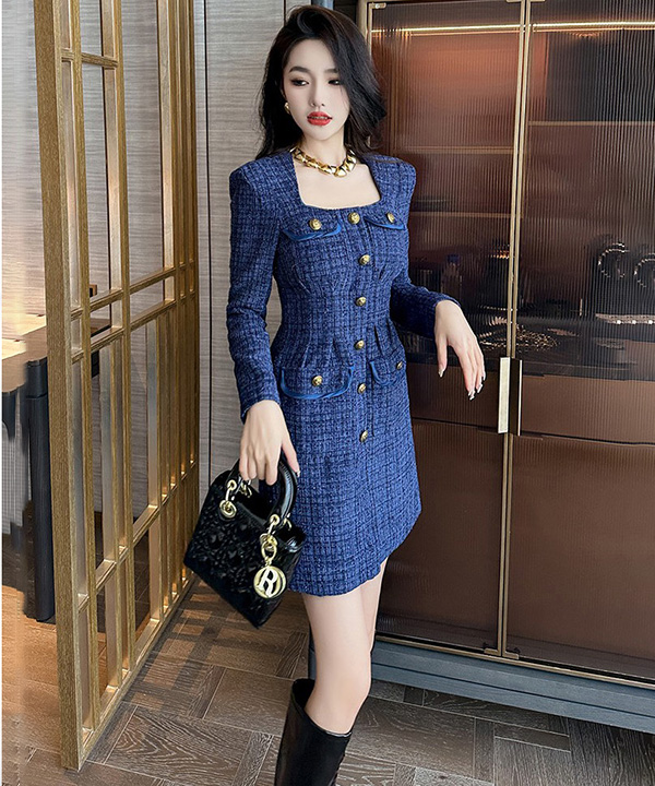 트위트 드레스 스퀘어넥 금장단추 연말파티룩 파티복 클럽의상 파티드레스 원피스