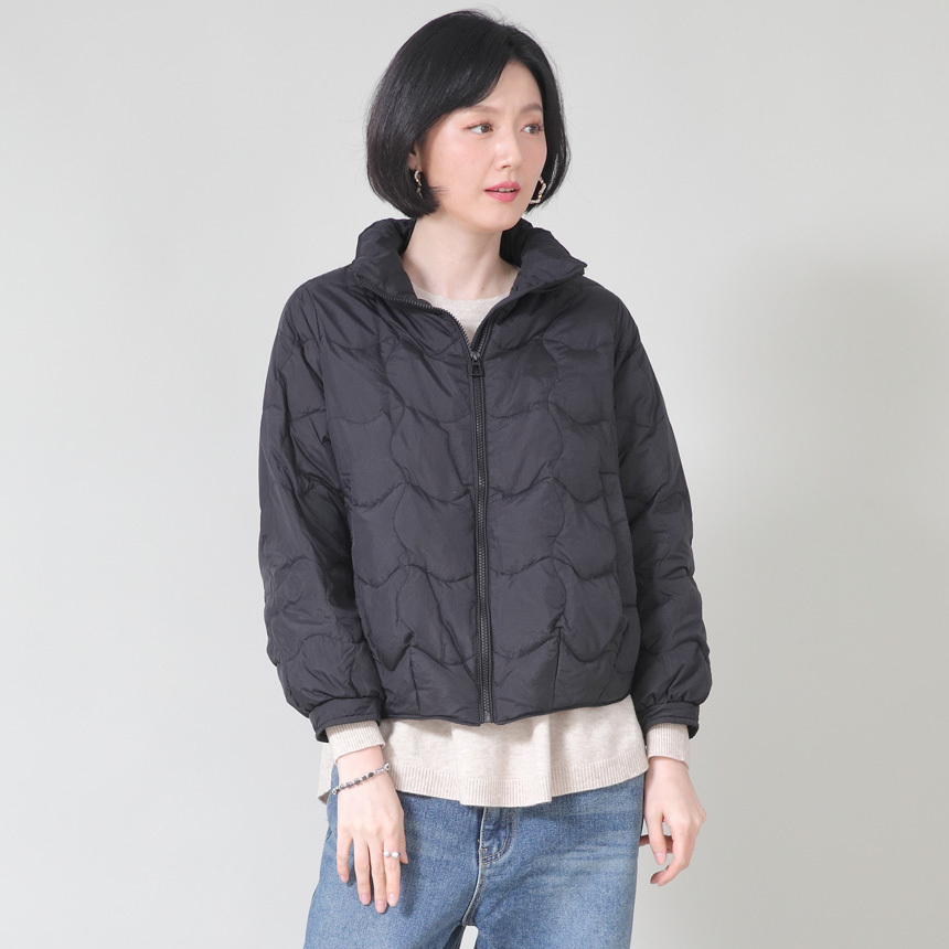 물결 차이나 카라 오리털 지퍼 여성 봄 가을 주머니 숏 경량 패딩 점퍼 J10369