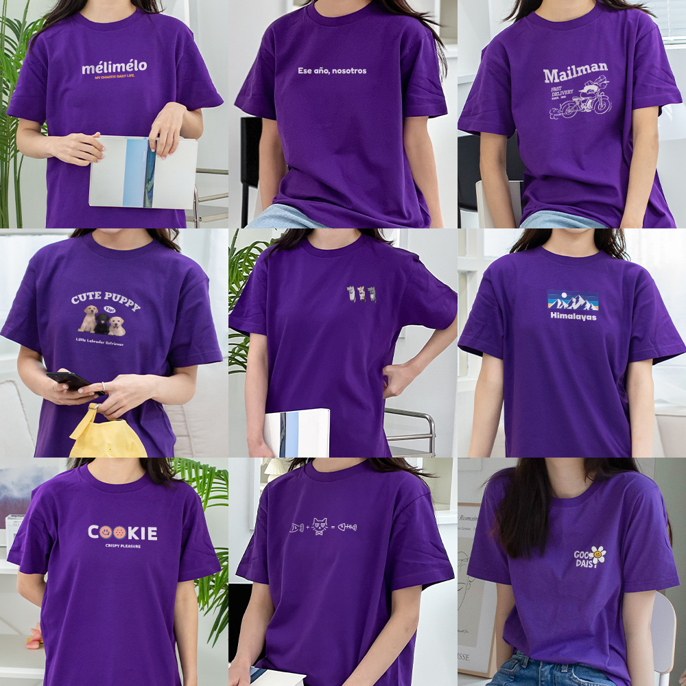 (빠른출고)보라색 티셔츠 여성 이너 코튼 반팔티 20수